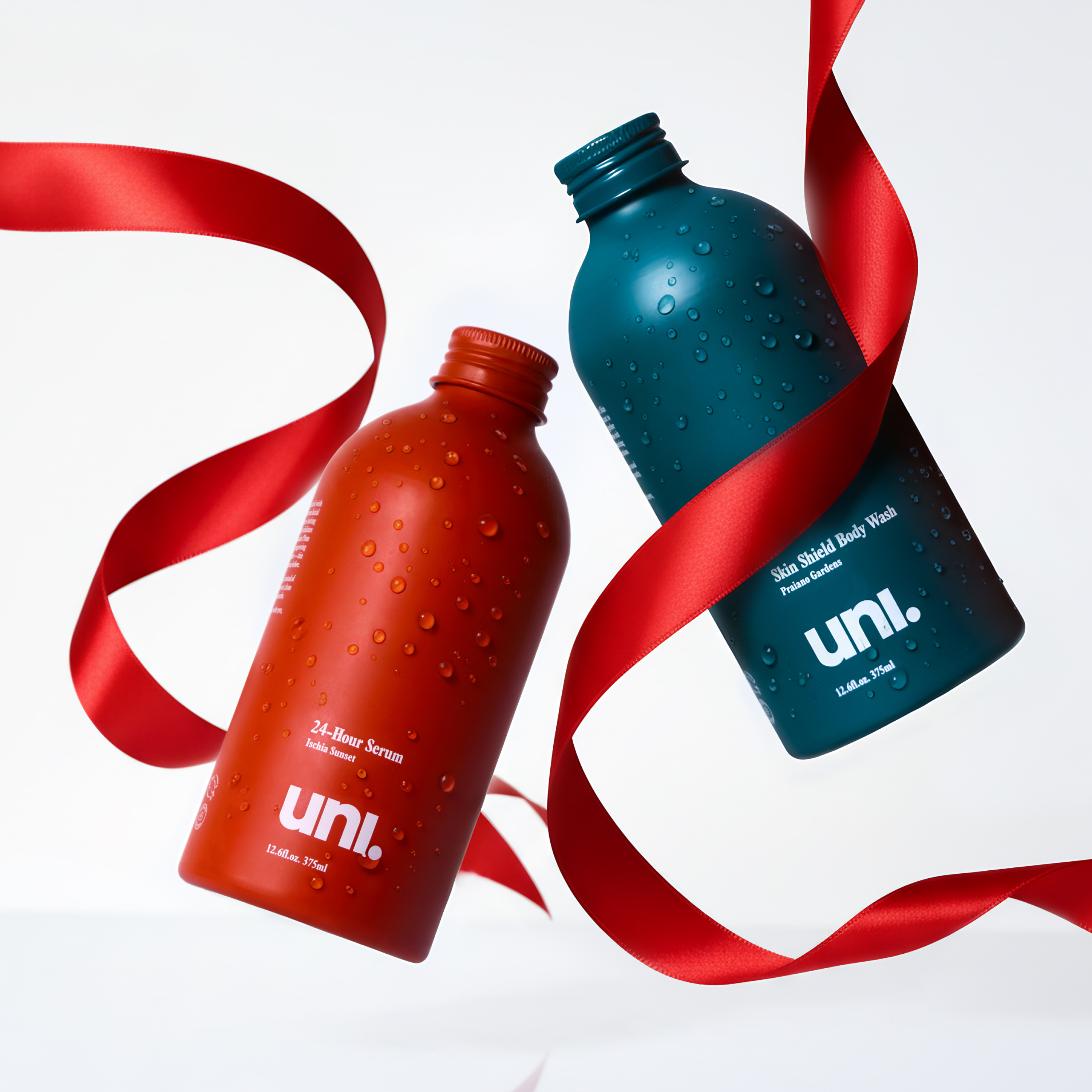 We’ve all mastered our facial skincare routine, but what about the other 90% of our bodies? After all, skin doesn’t end at your neck, so why should your anti-aging routine? Start treating your body like your face and see why celebs and beauty afficianados can’t stop raving about the powerhouse duo that is Uni’s 24-hour Hydrating Body Serum and Skin-Shield Body Wash.